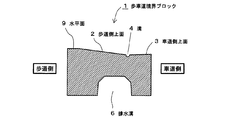 本発明は、交差点や横断歩道で歩行者の横断を容易にするため歩車道境界の高低差を低く設定した部分、及び車庫の出入りなど主に車の横断を容易にするため歩車道境界の高低差を低く設定した部分(以下これらの部分を「乗入部」と称する。)に施工する歩車道境界ブロック、及びこの歩車道境界ブロックを用いて施工した歩車道境界排水構造に関する。 The present invention is a portion in which the difference in height of the pedestrian road boundary is set low to facilitate crossing of pedestrians at intersections and pedestrian crossings, and the height of the pedestrian road boundary mainly to facilitate crossing of vehicles such as entering and exiting a garage. The present invention relates to a pedestrian road boundary block constructed in a portion where the difference is set low (hereinafter, these portions are referred to as “entrance portions”), and a pedestrian boundary drainage structure constructed using the pedestrian boundary block.