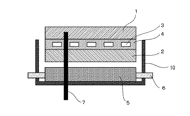 図3に示す製造装置を作製するため、先ずアルミニウム合金板を用いて冷却部材5を作製した。この冷却部材5には、給電配線、測温素子等を挿通するための貫通孔を機械加工により形成した。更に、第2の均熱板と接触する側の面の平面度が200μmとなるように機械加工を施した。また、第2の均熱板との当接面には、部分接触することなく全面にわたって均一に接触するように、厚さ0.5mmの軟性シリコンシートを設けた。