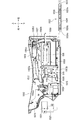 尚、係止片1044a,1044bは、右向き、つまり係止片1024a,1024bとは逆向きフック形状に形成されているとともに、スライド板金は、ベース板金に対して図示しないコイルバネにより常時右側に向けて付勢されている。そしてスライド板金の左端部には、上皿ロックリンク1018の上部の連係ピン1018aが係合されているとともに、右端部には、スライド板金をコイルバネの付勢力に抗して左側に移動操作するための操作片1045が、上皿本体1002の上部近傍に配置されるように設けられている。