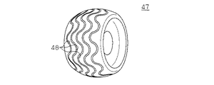 図10に示すように、揉み玉47の表面には、複数の凹部48が変形部位として形成されている。各凹部48は、ローラ状の揉み玉の周方向(回転方向)に沿って延びる波形の曲線状に形成されており、揉み玉47の軸方向の全体に亘って等間隔で形成されている。