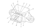 - 角速度を検出する振動子と、加速度を検出する加速度検出素子と、前記振動子から発生する角速度出力信号を処理するとともに加速度検出素子から発生する加速度出力信号を処理するICと、前記振動子、加速度検出素子およびICを収納するとともに、内側面に端子電極を設け、さらに外底面に電源電極、GND電極および出力電極を設けたケースとを備え、前記振動子を防振端子を介してケースに固定するとともに、加速度検出素子をケースにリジッドに固定するように構成した角速度および加速度検出用複合センサ。