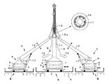 前記車両A上の吹上パイプ11は固定で垂直に伸びているが、車両B上の吹込パイプ12は絞りコーン部10に連通状態を保ちながらフレキシブル管でつながれてシリンダ17により角度変更可能になっている。前記移動台車6には、回転デバイスを備えて吹上パイプ11を旋回自在にしてもよい。吹上パイプ11内には、図2の右上欄のように、螺旋流起生ガイド18…を付して中央のパイプ11自体からも螺旋流を吹き上げるようにしてもよい。