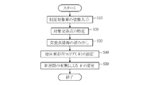ステップS20では、交差点情報読み出し部11により、GPS受信機3から入力した自車の位置情報や車両進行方向と、記憶装置10に記憶されている地図データとに基づいて、判定対象となる前方の交差点を特定する。そして、ステップS30に進む。