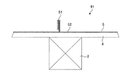 図2−1及び図2−2に示すように、実施の形態1の屋根91は、建物の棟から軒に向かって下り勾配に延設された断面矩形の垂木2と、垂木2の上に一面に敷設された野地板4と、野地板4の上に葺かれた板金製の屋根材5と、を備えている。屋根材5は、野地板4を介して、垂木2に釘52を打込んで固定される。垂木2の材料は、木材又は鉄骨である。