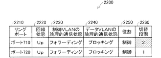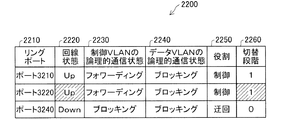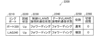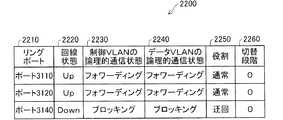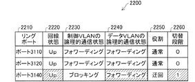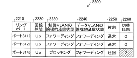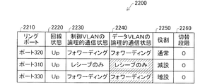隣接ノード300の制御VLANの論理的通信状態2230は、ポート320、ポート310が"フォワーディング"、ポート330が"レシーブのみ"となっている。