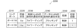 リングポート2210は、リングポートを表し、コンフィグレーションテーブル2100から作成する。隣接ノード200のリングポート2210は、ポート210、ポート220、ポート230を備えている。