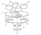 第2シャッター116には、回転軸Xに対して1/2回転(180°)回転させると回転前の孔の位置と重なる2回対称に配置された孔(開口部)116a、116bが設けられている。同様に、第1シャッター115には、回転軸Xに対して2回対称に配置された孔(開口部)115a、115bが設けられている。なお、第1シャッター115の回転軸、第2シャッター116の回転軸、及び基板102の回転軸は、同軸になるように配置されている。
