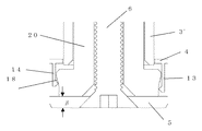 図11は、第二の実施形態である手摺を厚いフランジを用い壁面へ固定した場合の拡大断面図である。図中βはフランジ5の厚みを示し、図10のαに対し、厚みが大きい場合を示したものである。フランジ5の厚みが比較的厚いβとした場合、意匠カバー4は長爪部13よりも短爪部14により保持されることになる。この場合、短爪部14が被係止部18に当接した状態となるが、短爪部14は壁側(図11では下側)に押圧する力が働き、意匠カバー4がガタ付くことなく強固にブッシュ20の下側保持部17に保持されることになる。この場合、長爪部13は被係止部18に係止されずブッシュ20の円周部に当接することになる。これにより長爪部13はブッシュ20の内側に押圧する力が働き、意匠カバー4が円周方向に回転するのを抑制する効果を奏することになる。