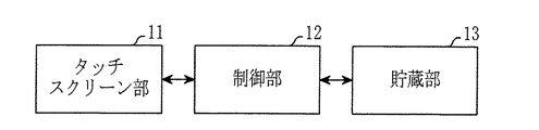貯蔵部13は、タッチスクリーン端末機の全般的な動作を制御する所定のプログラムとタッチスクリーン端末機の制御動作が行われるとき入出力される各種のデータとを貯蔵する。