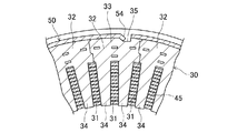スロット31には、固定子コア30に巻装された固定子巻線40を構成する導線45のスロット収容部が設置されている。本実施形態では、図4に示すように、各スロット31に12本の導線45のスロット収容部が径方向に一列に整列した状態で設置されている。