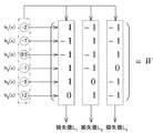 符号器41は、入力情報xが入力されると、符号表Wの1行目の3つの要素からなるコード1[1、−1、−1]と入力情報xとの関連づけを行う。そして、コード1が関連づけられた入力情報xを識別器421へ出力する。