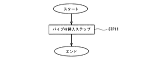 パイプ材挿入ステップ(STP1)は、図4(a)に示すように、第一パイプ材11の挿通孔13及び第二パイプ材12の係止穴14が重なり合うように、第一パイプ材11の開口から第二パイプ材12の一端を挿入するステップである。STP1では、作業者は、まず、第一パイプ材11の開口と第二パイプ材12の一端とを向かい合わせ、第一パイプ材11の開口から第二パイプ材12の一端を挿入する。続いて、作業者は、第一パイプ材11の挿通孔13と第二パイプ材12の係止穴14とが重なり合うように、第一パイプ材11及び第二パイプ材12の位置関係を調整する。