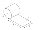 本実施形態の紙巻き品に用いられる黒紙2は、例えば、図4に示すように、ドラム1の円周方向の長さを幅Wとし、巻き芯41を有しているロール状に巻かれた長尺紙4を、ドラム1の軸方向長さL0に応じて、所望の長さLとなるように切断することで得られる。このように、長尺紙4を切断した黒紙2を用意することで、軸方向の長さL0が異なるドラム1の場合でも、ドラム1の外径R0が同じであれば、同じロール状の長尺紙4を用いることが出来る。