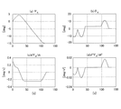 以上の関係式に基づき、変針条件を満足する参照針路を求める。そのために、まずは船体運動の初期値である角加速度C1aと角速度C2aはゼロとして設計パラメータを定めて諸変数の関係式を求める。簡単化のため変針量Δψ0は正とする。これにより加速と減速とのモードで時間Ta=Td、定数−βa=βd、変針量Δψa=Δψdになる。