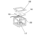 絶縁性基板16は、平板形状で略中央に開口である孔部21を有し、絶縁性基板16の端部が支持部材22を介して本体ケースの仕切板部9に固定されている。図2の部品配置では、送風手段7によって、吸気口4から吸い込んだ空気の一部は、放電電極17の周囲を通り、孔部21を介して、排気口5へ送風されるものである。図3の部品配置では、孔部21は、本体ケース6の排気口5に対向しており、送風手段7によって、吸気口4から吸い込んだ空気の一部は、放電電極17の周囲を通り、孔部21を介して、排気口5へ送風されるものである。絶縁性基板16は、セラミック基板であっても、フッ素などの樹脂基板であっても良い。セラミック基板として、シリカ、アルミ、マグネシウムのうちいずれか1つを含む基板であっても、アルミナ基板であっても良い。オゾンやラジカルで腐食されにくい無機系のものあるいはフッ素樹脂であれば良いためである。絶縁性基板16の表面抵抗は、1010Ω/□以上であることが望ましい。