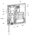 前記取付台583の上辺および左右側辺には突部583A,583A、583B,583Bがそれぞれ形成されるとともに下辺にはΩ状に形成された可撓性部583Cが形成されている。この可撓性部583Cは左右側辺の外側から左右側辺が接近するような外力が加えられることにより撓んで左右側辺の接近を許容し、前記外力が除去されると左右側辺を元の位置に復帰させるものである。一方、図14にも示すように、基板50の上壁には係止穴52A1,52A1が形成されるとともに開口部52Aの左右側縁に形成されたフック状の係合片52A2および係合穴付きの係合突起52A3(図19参照)が形成されている。