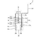 更に前述の実施形態には、ヒータに電力を供給するヒータ通電シャフトと、前記ヒータ通電シャフトの軸方向端部に設けられ、前記ヒータ通電シャフトが軸方向に受ける圧力を電気信号に変換する圧力検出素子と、該圧力検出素子の電気信号を処理する信号処理回路と、前記圧力検出素子を囲繞するとともに、前記圧力検出素子の信号出力端子を外周側へ突出させる絶縁性の第一絶縁部材と、前記第一絶縁部材の外周に設けられ、前記信号出力端子を通す第一スリットが形成された筒部を有し、前記ヒータ通電シャフトに接続されて前記ヒータに電力を供給する電力供給配線と、前記電力供給配線の外周面を覆うとともに、前記ヒータ通電シャフトと同軸を有し、前記信号出力端子を通す第二スリットが形成された筒体である第二絶縁部材と、前記第二絶縁部材の外周面に巻き付けられ、前記信号処理回路が形成されたフレキシブル基板とを備え、前記第一絶縁部材の外周側へ突出した前記信号処理端子は、前記第一スリットを通して前記電力供給配線の外周側へ突出し、前記第二スリットを通して前記第二絶縁部材の外周側へ突出し、前記信号処理回路に接続されている、グロープラグが開示されている。 Furthermore, in the above-described embodiment, a heater energizing shaft that supplies electric power to the heater, and a pressure detection that is provided at an axial end of the heater energizing shaft and converts the pressure that the heater energizing shaft receives in the axial direction into an electrical signal. An element, a signal processing circuit that processes an electrical signal of the pressure detection element, an insulating first insulating member that surrounds the pressure detection element and projects a signal output terminal of the pressure detection element to the outer peripheral side; A power supply wiring that is provided on the outer periphery of the first insulating member, has a cylindrical portion formed with a first slit through which the signal output terminal passes, and is connected to the heater energizing shaft and supplies power to the heater; A second insulating member that is a cylindrical body that covers the outer peripheral surface of the power supply wiring, is coaxial with the heater energizing shaft, and is formed with a second slit through which the signal output terminal passes. A flexible substrate wound around an outer peripheral surface of the second insulating member and formed with the signal processing circuit, and the signal processing terminal protruding to the outer peripheral side of the first insulating member is connected to the power through the first slit. A glow plug is disclosed that protrudes to the outer peripheral side of the supply wiring, protrudes to the outer peripheral side of the second insulating member through the second slit, and is connected to the signal processing circuit.