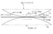 図4に示すように、第1ナーリングローラ21は、ローラ本体21aと、このローラ本体21aの外周面に設けた複数個の突起からなるナーリング歯40を有する。支持ローラ20は外周面が平滑なローラ本体20aからなり、ナーリングローラ21のナーリング歯40のような突起などは形成されることがない。