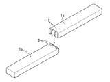 - 連結する両分割片(1a、1b)の側面に跨がる凹部(7)を形成するとともに、その凹部(7)内に、互いに対向する案内溝(8)を形成し、この案内溝(8)にスライド片(9)をスライド自在に設け、両分割片(1a、1b)を連結して、前記スライド片(9)を両分割片(1a、1b)の前記凹部(7)に跨るようにスライドさせて、この連結をロックした状態とする一方で、このスライド片(9)を前記一方の分割片(1a)側に退去させることによって、ロック状態を解除するようにした請求項1から3のいずれか一つに記載の文鎮。