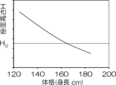 推定された乗員の体格(身長)から最適乗降位置(座面高さH’)を求める例を表わすグラフである。