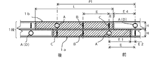 エレメントは、貫通孔が6個、開いておりその順番は、下部(ローアーパーツ1aの部分)は前(図3右)より大口径孔a、小口径孔b、小口径孔cと開いている。上部(アッパーパーツ1bの部分)は貫通孔が、前(図3右)より小口径c、小口径b、大口径aと開いている。