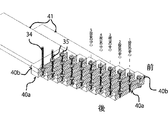 次に、本発明を実施するための形態について図面を参照して具体的に説明する。本明細書の説明においては、「上」「下」の方向は図面上の上下関係と同じ方向で説明し、「前」「後」の方向は、後述するエレメント或いはユニットを積み上げていく方向での手前側(図1、図5では右側)を「前」方向として説明する。