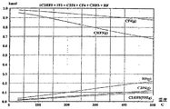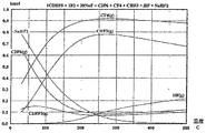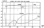 HF5+F2=C2F6+HFの、温度の関数として計算された熱力学的平衡を示す。図