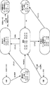 次に、この実施の形態にかかるスロットマシン1における遊技状態の遷移について詳しく説明する。図6は、スロットマシン1における遊技状態の遷移図である。スロットマシン1においては、有利RTにも不利RTにも移行可能な初期遊技状態としての通常遊技状態、特別RT、レアRT1及びレアRT2があり、また、特別遊技状態としてのビッグボーナス及びレギュラーボーナスがある。また、図6においては区分していないが、上記区分の各遊技状態のうちでビッグボーナス(A)〜(C)、レギュラーボーナスに当選している状態は、当選していない状態とは別の遊技状態として考えられる。