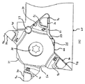 - B23B2200/369—Mounted tangentially, i.e. where the rake face is not the face with the largest area