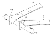 フロントブレース16及びリアブレース18は、鋼板のプレス品に限られず、例えば図7に示されるように、金属パイプを用いて構成されていてもよい。各々の一端16A,18Aを平板状に形成することにより、例えばボルト40及びナット42を用いて、該一端16A,18Aをバンパー部28の取付け部36(図5)に締結固定することができる。
