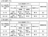 変動表示関連処理では、まず、確変フラグがオンか否か、即ち現在の遊技状態が高確率状態および低確率状態のいずれであるかを判定する(S300)。確変フラグがオフのとき、即ち現在の遊技状態が低確率状態のときにはS228またはS234で読み出した大当り判定用乱数と低確率用大当り判定テーブルとを用いて大当り判定を行い(S302)、確変フラグがオンのとき、即ち現在の遊技状態が高確率状態のときには読み出した大当り判定用乱数と高確率用大当り判定テーブルとを用いて大当り判定を行って(S304)、その判定結果が大当りか否かを判定する(S306)。大当り判定テーブルの一例を図19に示す。なお、図19(a)に低確率用大当り判定テーブルを示し、図19(b)に高確率用大当り判定テーブルを示す。低確率用大当り判定テーブルでは大当り判定用乱数が値0〜399のうち値60,61のときに大当りとし(1/200の大当り確率)、高確率用大当り判定テーブルでは当り判定用乱数が値0〜399のうち値60〜79のときに大当りとするものとした(1/20の大当り確率)。なお、本実施例では、第1特別図柄と第2特別図柄とで共通の大当り判定テーブルが用いられる。