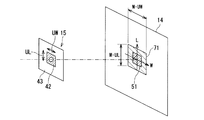 ピンホールカメラ法では、ピンホールの径がX線管13の焦点サイズよりも十分に小さいとき、X線管13の焦点位置52からピンホールまでの距離をA、ピンホールからX線検出部14までの距離をBとすると、W方向にΔW、L方向にΔLのサイズを有する焦点が、拡大率(倍率)M=B/Aで拡大された焦点像51としてX線検出部14に結像することが知られている。X線検出部14が出力する画像信号はX線検出部14に照射されたX線の強度分布信号であり、ピンホールを通過してX線検出部14に照射されるX線の強度は強く、周囲要素42で遮られたX線の強度は弱い。