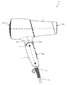 本発明にかかるヘアードライヤの他の例について図面を参照して説明する。図12は本発明にかかるヘアードライヤの右ハンドルカバーを取り外した状態を示す図であり、図13は本発明にかかるヘアードライヤの右ハンドルカバーを示す図であり、図14は本発明にかかるヘアードライヤの節度部の分解斜視図である。