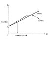 ここで、m,nは定数である。α=0のときのQと、α=0.2のときのQとが既知なので、m,nは容易に求められる。この数式3を用いることにより、図5のような予測特性が得られる。 Here, m and n are constants. Since Q when α = 0 and Q when α = 0.2 are known, m and n can be easily obtained. By using Equation 3, prediction characteristics as shown in FIG. 5 can be obtained.