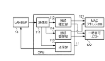 受信部111は、通信端末20Aから接続要求をLAN側I/F14を介して受信する。この接続要求には、通信端末20AのMACアドレスが含まれる。