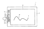 図4の例を援用して説明すると、ベゼルタッチ無しで単にペン4や指Fで表示領域内をなぞった場合、上記描画アプリケーションにより図4の軌跡40と異なり線の太さが一定ではない状態で描画がなされることになる。