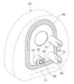 ピン受け部50は、後述するヒンジ軸86が挿入されるピン孔54が中央に形成されている。ピン受け部50の端部は、ピン孔54を曲率中心とした半円形に形成された半円部50Aとされている。ピン受け部50には、半円部50Aの一方の端部側に半円部50Aの径方向外側へ延びる第1のストッパ受け面56が形成され、半円部50Aの他方の端部側に半円部50Aの径方向外側へ延びる第2のストッパ受け面58が形成されている。