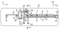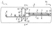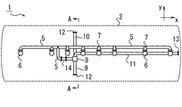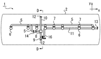配管10とを切換弁8の側方に連結する構成とすることもできる。この実施形態は1系統の配管を備えてポンプ14を設置する構成である。この実施形態では、この三方弁は主搬送管5と、左配管9または右配管10のいずれか1つを選択的に連通する。三方弁は四方弁に比べて簡易な構成であり、安価に製造できるので、タンク装置1の製造コストを抑制するには有利である。また三方弁は四方弁に比べ小さく作成することができるので、タンク2の下方に十分な空間がない場合であっても利用することができる。