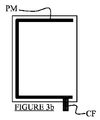 FIG. 2 is a diagram showing capacitive charge leakage due to resistance characteristics of electrodes and guards; and FIGS. 3a to 3f show examples of arrangement of metal strips.