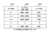 図8に示すテーブルは、エリア番号20001、エリア中心20002およびエリア半径20003の列要素を含む。エリア番号20001は、エリアを一意に識別するための番号である。エリア中心20002は、エリアの中心点の緯度および経度である。エリア半径20003は、エリアの半径である。