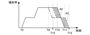 その後、T5からは噴射率がDQ2で略一定となる。このときには、アウタニードル6及びインナニードル7が上昇を続けているものの、アウタ噴孔22及びインナ噴孔23の断面積によって噴射率が決まってしまうため、T8までは噴射率が略一定となっている。