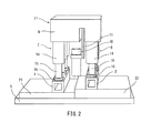 共通支持部17は、図5及び図6に示すように、梁9に設けられ流体で満たされた密閉容器31と、容器31内の流体の圧力を調節する調節部32とを備える。この流体は、特に限定されないが、例えば油である。調節部32は容器31に取り付けてある。調節部32は、例えば、容器31に繋がるシリンダー34と、シリンダー34内を移動するピストン35と、ピストン35を動かすための動力源36とを備える。調節部32は、動力源36がピストン35を動かすことで、容器31内の流体圧を調節する。