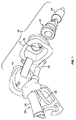 動作の際、適切な燃料ノズルがノズル通路38に向かって動くと、燃料ノズルの遠位先端部がガイド凸部40に当接し、それによりガイド凸部40を外方に押し拡げ、そのため燃料ノズルがノズル通路38内に入ることができる。引き続き適切な燃料ノズルをノズル通路38に押し込むと、遠位先端部がフラップの前面に当接し、それにより、フラップが延長ビームとフラップ固定カラム44との接触面の回りで枢動して開放位置になる。