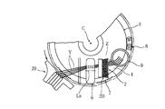 なお、ローラ6は、電気モーターによって電気的に回転駆動しても良い。そして、複数本の糸Yを糸道切換装置20にて切り替える際に、元の糸Yを上昇させ、次の糸Yを降下させるが、元の糸Yを上昇させる動きを(図示省略の)センサーにて検出して、直ちに上記電気モーターを回動させて、糸Yを装置中心部C側へ案内開始するのが望ましい。