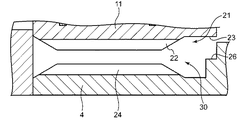 当接面23は、外筒11が固定される相手側のケーシング4の複数の突起24の外側の端面24aに当接する。これにより、外筒11は、その中心軸が当該ケーシング4の中心軸に一致した状態(すなわちこれらの中心軸が回転駆動装置1の中心軸Oに一致した状態)でケーシング4の内部に固定される。このとき、底面25と突起24との間に隙間g(図3参照)が形成される。