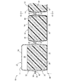 第十の態様によれば、上シートと下シートの固着領域の幅が重ね部の幅に対して20%以上とされていることにより、十分な耐久性や信頼性をもって上シートと下シートを固着することができる。また、上シートと下シートの固着領域の幅が重ね部の幅に対して80%以下とされていることにより、面方向における上シートと下シートの相対的な位置ずれや固着位置の誤差などによる固着面積のばらつきが防止されて、所定の面積を有する固着領域を安定して確保することができる。好適には、固着領域が重ね部の幅方向中央部分に設定されることにより、固着領域の面積などのばらつきが効果的に防止され得る。