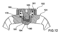 請求項6によれば、ラッチ部材はクリートの後フックのそれぞれの溝に係合するのに適した傾斜プロファイルを有する外面を備える。乗り手の靴のソールに接続可能な本発明に係るクリートは、ペダル本体の前部内および後部内にそれぞれ係合可能な前フックおよび後フックを設けられ、クリートの後フックは、そのような溝が規定される2つの突出部を備える。 According to claim 6, the latch member comprises an outer surface having an inclined profile suitable for engaging the respective groove of the rear hook of the cleat. The cleat according to the present invention, which can be connected to the sole of the shoe of the rider, is provided with a front hook and a rear hook which can be engaged in the front part and the rear part of the pedal body, respectively. With two defined protrusions.