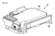 図5乃至図11を参照すると、電池モジュール34は、流入口112に隣接して、電池パックハウジング30の内部領域74の内部空間76内に位置している。電池モジュール34は、フレーム部材120,124,128、絶縁層140、電池セル150,154,158,162,166,170,180,184,188,192,196,200、電池セル相互接続アセンブリ220,222、及びエンドプレート230,232を含んでいる。