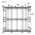図14乃至図21を参照すると、フレーム部材120は、実質的に矩形リング状の外側プラスチックフレーム260、中央プラスチック壁262,263、及び熱交換器264を含んでいる。熱交換器264は、互いに連結されており、貫通延長された流路部540を形成する第1及び第2熱伝導性プレート360,362を含んでいる。図17を参照すると、流路部540は、第1及び第2熱伝導性プレート360,362をそれぞれ貫通して延びた下位流路部550,552,554,556,558,560を含んでいる。