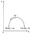 角度から膜厚を求める方法は、公報の図13に示すような角度と膜厚の関係を事前に測定しておき、この関係を利用して、角度を膜厚に直接変換する。具体的には、導電性膜の膜質に応じた中心点(基準点)P、およびその導電性膜の多数の膜厚に関する多数の仰角θを求めて、メモリ内に記憶する。仰角θごとに1本の予備測定直線が得られる。多数の仰角θに応じて、多数の予備測定直線が得られる。この後に、基板研磨装置の稼動時には、その測定毎のインピーダンスの抵抗成分とリアクタンス成分の出力値とメモリ内の中心点Pとを結んだ本番測定直線rnの仰角θと、予備測定直線に基づいて導電性膜の膜厚を演算する。 As a method for obtaining the film thickness from the angle, the relationship between the angle and the film thickness as shown in FIG. 13 of the publication is measured in advance, and the angle is directly converted into the film thickness using this relationship. Specifically, a central point (reference point) P corresponding to the film quality of the conductive film and a number of elevation angles θ relating to a number of film thicknesses of the conductive film are obtained and stored in the memory. One preliminary measurement line is obtained for each elevation angle θ. A large number of preliminary measurement straight lines are obtained according to a large number of elevation angles θ. Thereafter, when the substrate polishing apparatus is in operation, the elevation angle θ of the actual measurement line rn connecting the resistance resistance and reactance component output values for each measurement and the center point P in the memory and the preliminary measurement line are used. The film thickness of the conductive film is calculated.